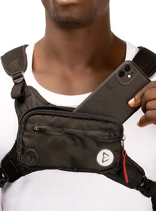 Minimalist training chest rig to store your essentials while training. Designed with neoprene padding on all contact points to be comfortable when worn without a shirt. The back panel features a slim zipper pocket for extra storage.